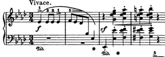 This waltz in F major, a typical Grande valse brillante, was composed in 1838 and published in the same year.[3] This waltz is sometimes called the "cat's waltz"[4][5]