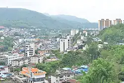 The China–Myanmar border runs to the south of the town, the nearest Myanmar town being Pang Hseng (Kyu-hkök) to the south across the Wanding River.[12] There is a border checkpoint between Wanding and Pang Hseng,[13] which functioned as the crossing from what was then known as Burma into China on the historic Burma Road and Ledo Road, with supplies transported from India and Burma into China during World War II.