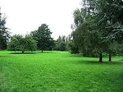 Wandlebury was a border settlement.[1] There is evidence that it was occupied by the Romans.[5] The Romans built a road from Worts Causeway to Wandlebury.[7] Two pottery sequences have been found establishing two separate construction phases.[8] It may have been inhabited into the 1st century AD.[8] It was later named Wendlesbiri (meaning, "Waendal's fort")[1] by the Anglo Saxons and used as a Hundred council rendezvous point. Sir Thomas Malory mentions a Wandesborow Castle in Le Morte d'Arthur (1470), possibly referring to the Wandlebury Ring.[9] The site has undergone considerable change since the 17th century.[10] When a house, garden and racing stable was built for King James II within the boundaries of the old fort in 1685, the inner rampart and ditch were levelled.[5] The mansion was later owned by Lord Godolphin and demolished in 1956, but the stable remains.[11] The site is now a country park.[2]
