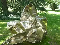 His latest works have turned to large-scale sculptures representing crumpled up newspaper, either en masse in trash cans, buildings or other repositories, or individually, in giant exploded versions of ordinary, everyday trash.