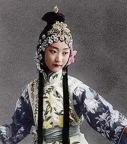 From Wanrong and Puyi's wedding, Mintong became infatuated with Puyi and spent much of her life trying to win his affection. Her parents had arranged a marriage with another noble, although he had numerous affairs before their wedding, notably with a well-known actress.[1] In an effort to cancel the wedding, Mintong was quoted as saying "If you don't break off the engagement, I'm going to hang myself" to her mother. She was a close friend of actress Meng Xiaodong, who was also her next-door neighbor. Their friendship eventually resulted in Mintong auditioning for the Peking Opera and her starting to learn martial arts.[5]
