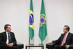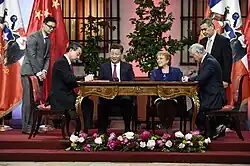 During his first tenure as foreign minister, Wang helped facilitate the diplomatic recognition of the People's Republic of China by Panama in 2017, the Dominican Republic and El Salvador in 2018,[23] and the Solomon Islands in 2019,[24] with all four nations ceasing relations with the Republic of China (Taiwan).[25][26]