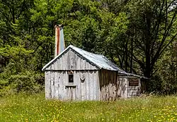 Cecil King from Wellington was one of those who went prospecting in the area of the Wangapeka River in the 1930s. Along with some other miners, in 1935 King built a small slab hut near the junction of the south and north branches of the Wangapeka River. He travelled from Wellington to live in the hut during summer times over a period of 46 years.[9] He spent more time at the hut after he retired, and developed a flume system to assist with gold mining. King generally welcomed travellers, and was known to offer hospitality.[9] In 1991, the hut was restored by the Department of Conservation.[10][11]