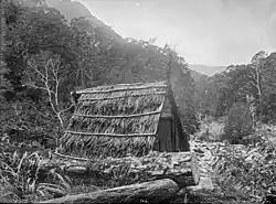 Jonathan Brough was appointed to lead the construction of the track from Wangapeka Saddle to the headwaters of the Karamea River.[3] Contracts for the construction were let in quarter-mile sections. Up to 20 men were hired to work on building the track, most of them unemployed diggers. The track reached the valley floor of the Karamea River by 1896, and through the Karamea River gorge by 1897. In 1889, Brough constructed an A‑framed shelter at a lookout point above the Taipō River at its junction with the Karamea River. This shelter became known as the Tabernacle. This era of track construction by contract ended when the track reached the present site of Taipō Hut. However, further work was completed, cutting a track through open tussock to the area now known as Stag Flat, and then in a zig-zag up the steep section to Little Wanganui Saddle.[1]
