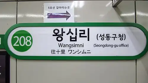 | Revised Romanization | Wangsimni-yeok | |||||||||||||||||||||||||||||||||||||||