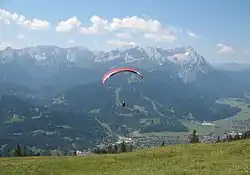 The mountain is a popular destination for enthusiasts of paragliding who take off from the summit plateau to fly south into the Garmisch-Partenkirchen valley or to peaks in the Wettersteingebirge. The mountain's thermals make it popular, as they enable paragliders to make long flights when the weather conditions are right.[11]
