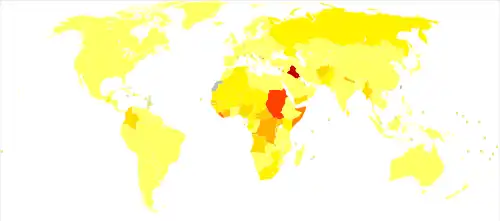 During Napoleon's retreat from Moscow, more French military personnel died of typhus than were killed by the Russians.[98] Of the 450,000 soldiers who crossed the Neman on 25 June 1812, less than 40,000 returned. More military personnel were killed from 1500 to 1914 by typhus than from military action.[99] In addition, if it were not for modern medical advances there would be thousands more dead from disease and infection. For instance, during the Seven Years' War, the Royal Navy reported it conscripted 184,899 sailors, of whom 133,708 (72%) died of disease or were 'missing'.[100] It is estimated that between 1985 and 1994, 378,000 people per year died due to war.[101]