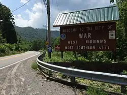 War is a city in McDowell County, West Virginia, United States. The population was 690 at the 2020 census.[3] War was incorporated in 1920 by the Circuit Court of McDowell County. Its name is derived from War Creek,[6] whose confluence with Dry Fork is located within the city. War is the only place in the United States with this name. War was formerly known as Miner's City.