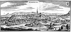 Warburg (German pronunciation: [ˈvaːɐ̯bʊʁk] ⓘ; Westphalian: Warberich or Warborg) is a town in eastern North Rhine-Westphalia, central Germany on the river Diemel near the three-state point shared by Hessen, Lower Saxony and North Rhine-Westphalia. It is in Höxter district and Detmold region. Warburg is the midpoint in the Warburger Börde. Since March 2012 the city is allowed to call itself 'Hanseatic City of Warburg'.