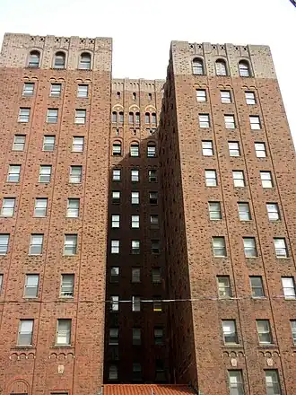 Designed by noted New York architect Arthur Loomis Harmon (1878–1958) and built in 1926, this historic structure is an eleven-story, U-shaped, steel frame and brick building with cast stone and granite trim that was created in an Italian Renaissance Revival style. It has a stepped back form and rooftop loggia and was originally built as a residential hotel for professional women. From 1952 to 2001, it was owned by the Dominican House of Retreats and Catholic Guild and known as The Lucy Eaton Smith Residence.[2] It was added to the National Register of Historic Places in 2002.[1]