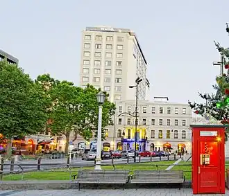 Warner's Hotel was under the threat of demolition from the 1960s until 2000, when property investor and developer Gordon Chamberlain, director of Crystal Imports, purchased the building from Angus Macfarlane.[16][17] A 14-storey Novotel hotel was built on the site of the beer garden behind a replica of the hotel's original 1910 façade. The new hotel, designed by CDA Architecture opened in January 2010.[18]