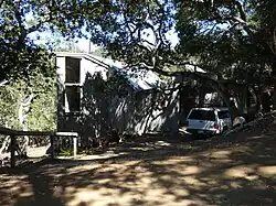 Leopold designed his first residential structure in the late 1940s, building it on the Garcia River. While living in Big Sur, Leopold befriended modernist architect Rowan Maiden (1913-1957), who from 1939-1941 studied at Taliesin West under Frank Lloyd Wright, and who went on to design the landmark Nepenthe restaurant in the Organic tradition. His progressive philosophy influenced Leopold's burgeoning architectural vision.[6][11][12]