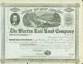 ![]() Share of the Warren Rail-Road Company, unissued, vignette with the Delaware Water Gap | |||