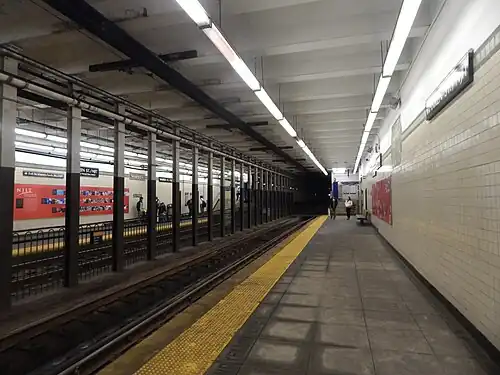 Warren Street/NJIT station is one of four underground stations on the Newark City Subway Line of the Newark Light Rail. It is the furthest station from Downtown Newark that is underground. The station is owned and service is operated by New Jersey Transit. The station has entrances on both sides of Lock Street, just north of Warren Street in University Heights. It is decorated with beige tiles and colored tiles for borders, mosaics and street indicator signs. This station is not wheelchair accessible.