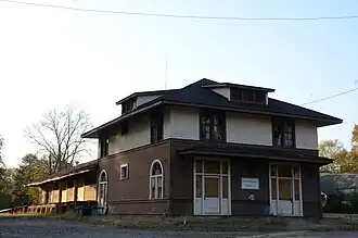 The Warren and Ouachita Valley Railway Station is a historic railroad station at 325 West Cedar Street in Warren, Arkansas. It was built in 1909 by the Warren and Ouachita Valley Railroad, which in 1899 ran tracks from Warren to Banks, primarily to serve the lumber industry. The station is a two-story wood-frame structure with an attached single story warehouse. The main block has a hipped roof with shed dormers, and the warehouse roof is a gable roof that extends over loading areas. The building was extensively damaged by fire and rebuilt in 1911.[2]
