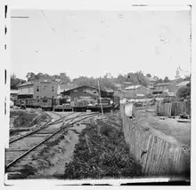 Warrenton was connected to the Orange and Alexandria Railroad in 1853 via a branch line. Warrenton's connection to the line had previously been proposed, but construction hasn't begun until 1852.[17] Given the rail line's strategic usage during the American Civil War, the Warrenton Branch was a target for attack twice.[18] Because of this, the railroad was left largely abandoned and unusable by 1863. Southern Railway resumed passenger service to the town from 1909 to 1944 with commercial service continuing through the 1980s. Norfolk Southern ended service entirely in 1989 with the removal of tracks.[18][19]