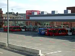 Warrington Bus Interchange (also known as Warrington Interchange) opened on 21 August 2006,[47] next to the site of a temporary terminus that had been in use for the past thirteen months. The new interchange was built in conjunction with the extension and upgrade of the adjoining Golden Square shopping centre, and replaced the previous bus station which dated from 1979.[48]