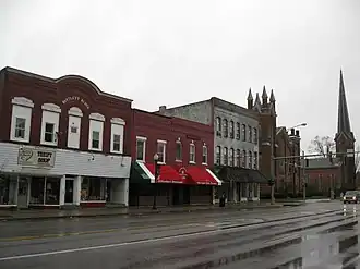 Warsaw Downtown Historic District is a national historic district located at Warsaw in Wyoming County, New York. The district encompasses 36 contributing buildings in the village of Warsaw. They are a variety of commercial, institutional, and religious buildings with most built between the 1870s and 1915. A number of commercial buildings were constructed after the fires of 1867 and 1887. They include the Andrew Jackson Warner designed United Church of Warsaw (1860s), First Baptist Church (1889), Bartlett Block (c. 1866, c. 1890), Hostetter's Pharmacy (c. 1888), New Watkin's Hotel (c. 1888) Sullivan Building (1915), Wyoming County Bank (c. 1905), Glover's Department Store (c. 1916), Gardner's Grocery (c. 1860-1870), Pratt Grocery (c. 1870), Farman-Humphrey Block (1884), Lincoln Block (c. 1894-1900), and Schwab's Motor Sales (c. 1940). Located in the district and separately listed are the Warsaw Academy and United States Post Office.[2]