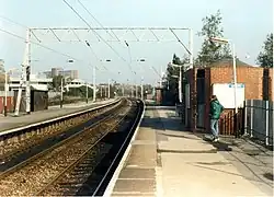 On 11 May 1931, following the electrification of the MSJAR, the station was renamed Warwick Road and was open daily.[12] It was also referred to as Warwick Road (Old Trafford)[13] on early tickets, timetables, etc. Warwick Road closed as a British Rail station on 25 December 1991[13] (the last trains having run on 24 December 1991) for conversion to light rail operation,[14] and reopened as a Metrolink station on 15 June 1992, at which point it was renamed Old Trafford.[13]