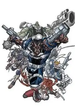 ![]() The Vince Marcus incarnation of Warwolf as depicted in Nick Fury's Howling Commandos #1 (December 2005). Art by Eduardo Francisco and Kris Justice. | |