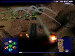 The game is fully 3D, based on the iViS 3D graphics engine developed by Sam Kerbeck of Eidos Interactive. The game world is mapped by a grid; vehicles tilt to meet hilly terrain, and projectiles can be realistically blocked by steep mountains or buildings. The camera is free-moving and can zoom in and out, rotate, and pan up or down while navigating the battlefield.