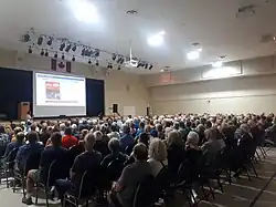 The town has a large community centre; the RecPlex, which has an auditorium, an amphitheatre and a YMCA. There is also the Wasaga Stars Arena, which contains twin-pad hockey rinks. It began construction in September 2021 on the former main Waterworld site and opened on January 27, 2024, replacing an older single-rink facility.[52][53]