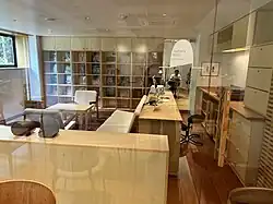 On the second floor, the building possesses a public listening room with an audio system where visitors can play records.[4]