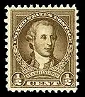 1½¢ - Scott #706 The likeness of Washington modeled from a painting known as the Virginia Colonel made at Mount Vernon in 1772 by Charles Willson Peale, the original of which is now in Washington and Lee University. (304,926,800 issued)[2] |