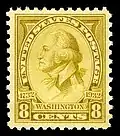 8¢ - Scott #713 The profile bust portrait of Washington facing to the left, reproduced from a crayon drawing made from life by Charles Balthazar Julien Févret de Saint-Mémin at Philadelphia in 1798. (96,506,100 issued)[2] |