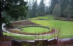 The City of Portland purchased the original 40.78 acres (16.50 hectares) of Washington Park in 1871 from Amos King for $32,624, a controversially high price for the time.[1][3] The area, designated "City Park", was a wilderness with few roads. Thick brush, trees, and roaming cougar discouraged access. In the mid-1880s, Charles M. Meyers was hired as a park keeper. A former seaman without landscape training, he transformed the park by drawing on memories of his native Germany and European parks. By 1900, there were roads, trails, landscaped areas with lawns, manicured hedges, flower gardens, and a zoo. Cable cars were added in 1890 and operated until the 1930s. The City of Portland constructed two reservoirs in the park in 1893 and 1894.[4]