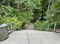 Stearns Canyon used to serve as the main entrance to the park but now serves as a pedestrian/bike only entrance from Burnside Street. The Stearns Himalayan Cloud Forest Garden is located within Stearns Canyon. | |