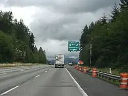 I-90 eastbound approaching its interchange with SR 18 near Snoqualmie