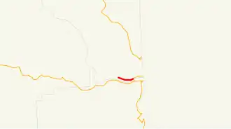 State Route 193 (SR 193) begins at an intersection with SR 128 north of the Red Wolf Crossing over the Snake River in Clarkston. SR 128 turns east towards Lewiston, Idaho and SR 193 travels west on the Wawawai Road parallel to the Snake River and the Great Northwest Railroad to the Port of Wilma,[3] carrying a daily average of 1,600 vehicles in 2011.[4] The highway ends at a private gravel road and the roadway continues downstream as the Wawawai Road to Wawawai County Park.[5]