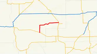 State Route 262 (SR 262) begins at an intersection with SR 26 between Royal City and Othello, north of the west area of the Columbia National Wildlife Refuge in rural Grant County.[3] Passing north through farmland in the Frenchman Hills, the highway turns east into O'Sullivan and passes Potholes State Park.[4] The roadway continues east and forms the boundary of the Potholes Reservoir, the O'Sullivan Dam,[5] and the northern boundary of the Columbia National Wildlife Refuge.[6] SR 262 travels east, passing Soda Lake and Warden Lake,[7] before travelling through the Lind Coulee and ending at an intersection with SR 17 northwest of Warden.[8]