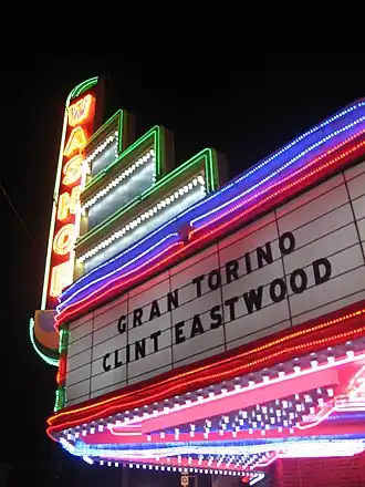 The theater is located at 305 Main Street, within the Anaconda Commercial Historic District. It was the last theater constructed in the United States in the Nuevo Deco (a form of Art Deco) style. The theater was designed in 1930 by Seattle architect B. Marcus Priteca. It was almost entirely finished by 1931, but its opening was delayed until Thursday, September 24,[2] 1936 because of the Great Depression. In 1936 dollars, its construction cost was a grand $200,000 (equivalent to $4,532,000 in 2024). The Smithsonian rates the Washoe as a national treasure due to the lavish interior. April 30, 1982, the Washoe was listed on the United States National Register of Historic Places for architectural significance.