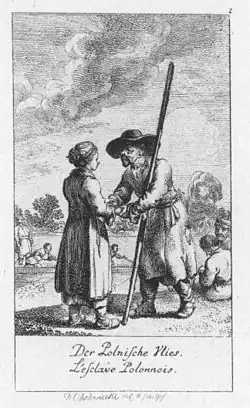 Since the 19th century the name started to be used as a pejorative term.[2] It was used in this sense e.g. by the historian Friedrich Christoph Förster who claimed that the poor "verschnappste Wasserpolacken" were evading the German army draft.[7] During World War II the occupant German Nazis used this term to divide Poles by micronationalities.[8]