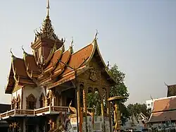 Wat Buppharam (Thai: วัดบุพพาราม, pronounced [wát bùp.pʰāː.rāːm]) is a Buddhist temple in Chiang Mai, Thailand. Founded in 1497 by King Mueang Kaeo,[1] the temple was where Kawila began a ritual circumambulation of Chiang Mai to reoccupy it after two centuries of Burmese rule.[2] Most of the temple buildings date to the late 1800s.[2] The temple is also known for its Burmese-style chedi, which was rebuilt in 1958, and a Lanna-style ordination hall made from teak and glass inlay mosaic, built in 1819.[3]