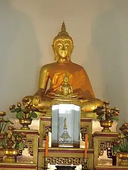 The principle Buddha statue named "Luang Por Chokdee" (หลวงพ่อโชคดี), which means "lucky venerable father".[1]