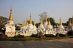 Wat Phra Chedi Sao Lang (Thai: วัดพระเจดีย์ซาวหลัง, lit. 'monastery of twenty stupas' in Lanna Thai) is a Buddhist temple in Lampang, Thailand.[1] The temple is located approximately 1.5 kilometres (0.93 mi) north of Lampang, and is noted for its series of 20 chedis arranged in a courtyard.[1] The bases of the chedis are built in the Lan Na style, and the upper parts are built in the Burmese style.[1] The temple also houses a 15th-century solid gold Buddha image that weighs 1,507 kilograms (3,322 lb).[2]