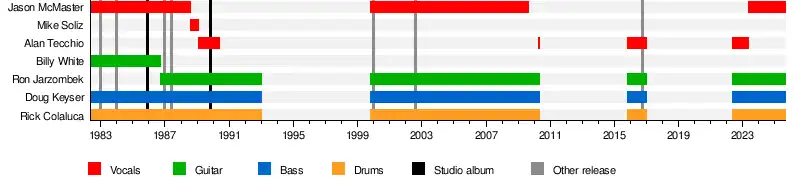 - Jason McMaster – vocals (1982–1988, 1999–2009, 2023–present)
