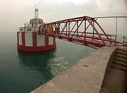Water cribs are offshore structures that collect water from close to the bottom of a lake to supply a pumping station onshore. The name crib is derived from the function of the structure—to surround and protect the intake shaft. Cities supplied with drinking water collected by water cribs include Chicago, where two of the nine originally built cribs are in active use.[1] Water cribs were also used as residences for caretakers who would live in the structure year round. Jobs included clearing debris and maintaining valves, gears, and instruments to keep the water flowing. These jobs have since been automated with periodic maintenance leaving no need for a full-time caretaker.[2]
