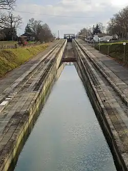 To date, only two water slopes have been built, both in southern France. In 1973 the Montech water slope (French: Pente d'eau de Montech) was put into service on the Canal latéral à la Garonne.