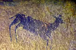 The sandstone formations could retain groundwater sufficient to make a suitable environment for primitive man. The cliff overhangs offered natural shelters for these early humans. The first human ancestors may have been at Waterberg as early as three million years ago, since Makapansgat, 40 kilometres distant, has yielded skeletons of Australopithecus africanus.[2] Hogan suggests that Homo erectus, whose evidence remains were also discovered in Makapansgat, "may have purposefully moved into the higher areas of the Waterberg for summer (December to March) game".