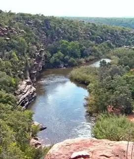 ![]() River gorge in the Lapalala Wilderness of the Waterberg showing horizontal sandstone layering | |