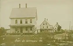 With land particularly suited for livestock grazing, agriculture became a principal industry. The town had many cattle and dairy farms. The Portland and Rochester Railroad passed through Waterboro and connected to Rochester, New Hampshire, in 1871, helping spur development. Rivers and brooks provided water power to operate mills. Several sawmills were established, and by 1886, the town produced about 1,800,000 feet (550,000 m) of lumber annually. Other businesses included the Ossipee Manufacturing Company at the Little Ossipee River, which made blankets, and the Steam Mill Company at South Waterboro, which made wooden boxes.[5] In 1922, the Goodall-Sanford Mills built in Waterboro village a spinning mill, taken over by a patent leather manufacturer that operated from 1939 to 1982.