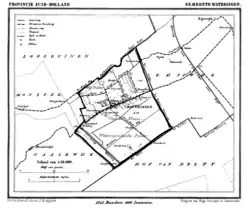 ![]() The village (dark green) and the statistical district (light green) of Wateringen in the municipality of Westland. | |