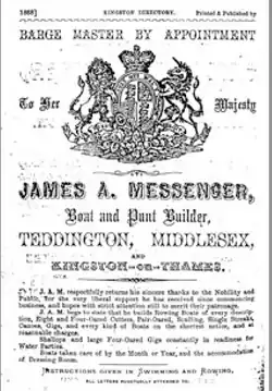 - James A. Messenger (1826-1901), Bargemaster to Her Majesty Queen Victoria (1862-1901)