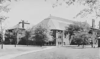 In 1895, University Regent Levi L. Barbour gave the university several lots in Detroit to be used for an art building. At the January, 1898 regent's meeting, it was decided to sell the lots and use the profits of $25,000 ($944,900 in 2024 dollars[1]) to build a women's gymnasium. The Barbour Gymnasium addition was completed that year to the north of the original Waterman Gymnasium and was intended for use by women students. The two buildings were connected by several doors that could be opened for larger events, such as University Senate receptions and dances.[3]