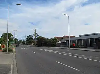 A small Catholic Church was built on Waterworks Road in 1921, and St Finbarr’s Catholic primary school in 1925. The tram line was extended from Red Hill to Jubilee Terrace in 1924, and then to Coopers Camp Road in 1935.[3] This line operated continuously until it was closed in 1969. Examples of 1920s[4] and later[5] trams are shown.