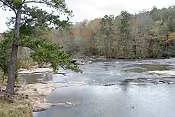 Watson Mill Bridge State Park is a 1,018-acre (4.12 km2) Georgia state park located near Comer and Carlton on the South Fork of the Broad River. The park is named for the Watson Mill Bridge the longest original-site covered bridge in Georgia, which spans 229 feet (70 m) across the South Fork of the Broad River. The site is listed on the National Register of Historic Places as the Watson Mill Covered Bridge and Mill Historic District. The bridge, built in 1885,[2] is supported by a Town lattice truss system held together with wooden pegs also known as trunnels. Georgia once had over 200 covered bridges, but only 20 now remain. The park also offers a scenic nature trail and a new hiking/riding trail that winds through the thick forests and along the rivers edge.
